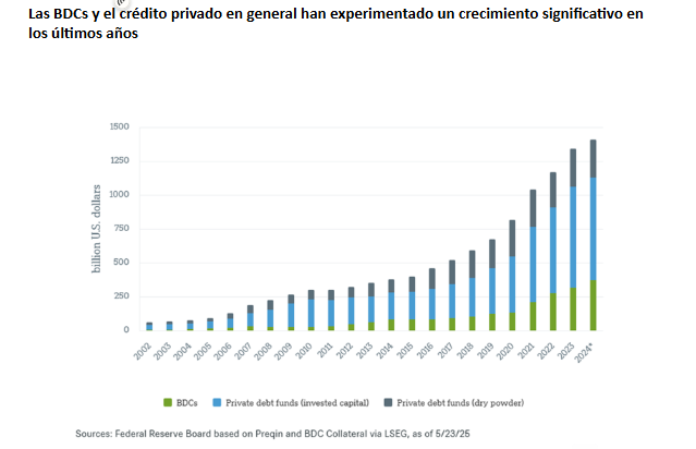 No es un problema menor si tenemos en cuenta el tamaño que ha alcanzado este mercado. El crédito privado ya mueve cerca de 1,8 billones$ a nivel global, tras más de una década de crecimiento acelerado. Parte de esa expansión se explica porque, después de la crisis de 2008, la regulación obligó a los bancos a reducir su exposición a determinados préstamos corporativos. Ese espacio lo ocuparon las grandes gestoras de activos, que comenzaron a financiar directamente a empresas desde vehículos privados.
