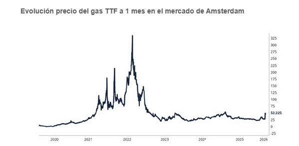 Por otra parte, como señala el gestor de Banor Mistral, los precios del gas determinan el precio marginal de la electricidad en Europa tras la liberalización. Así, el gas ha subido, pero lejos de lo que subió al comenzar la guerra en Ucrania. Por lo que puede ser relevante seguir la evolución del precio del gas, más que la del petróleo.