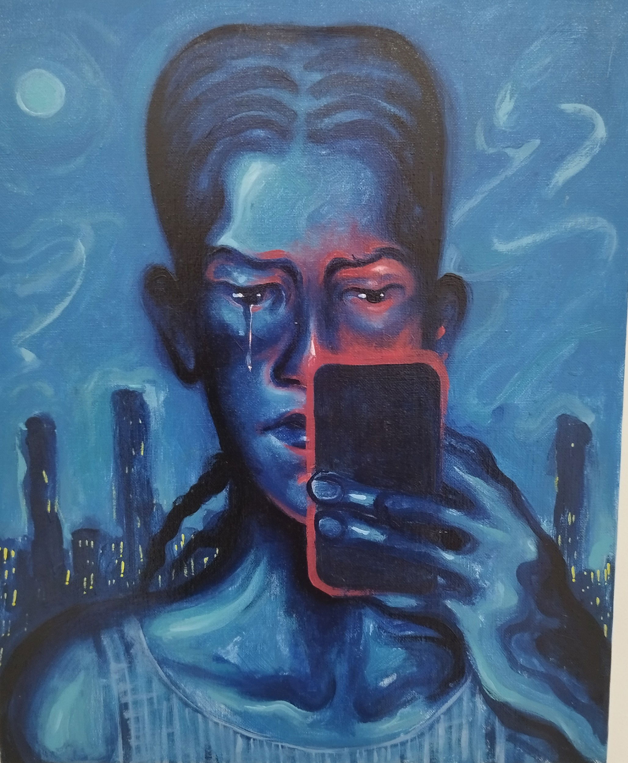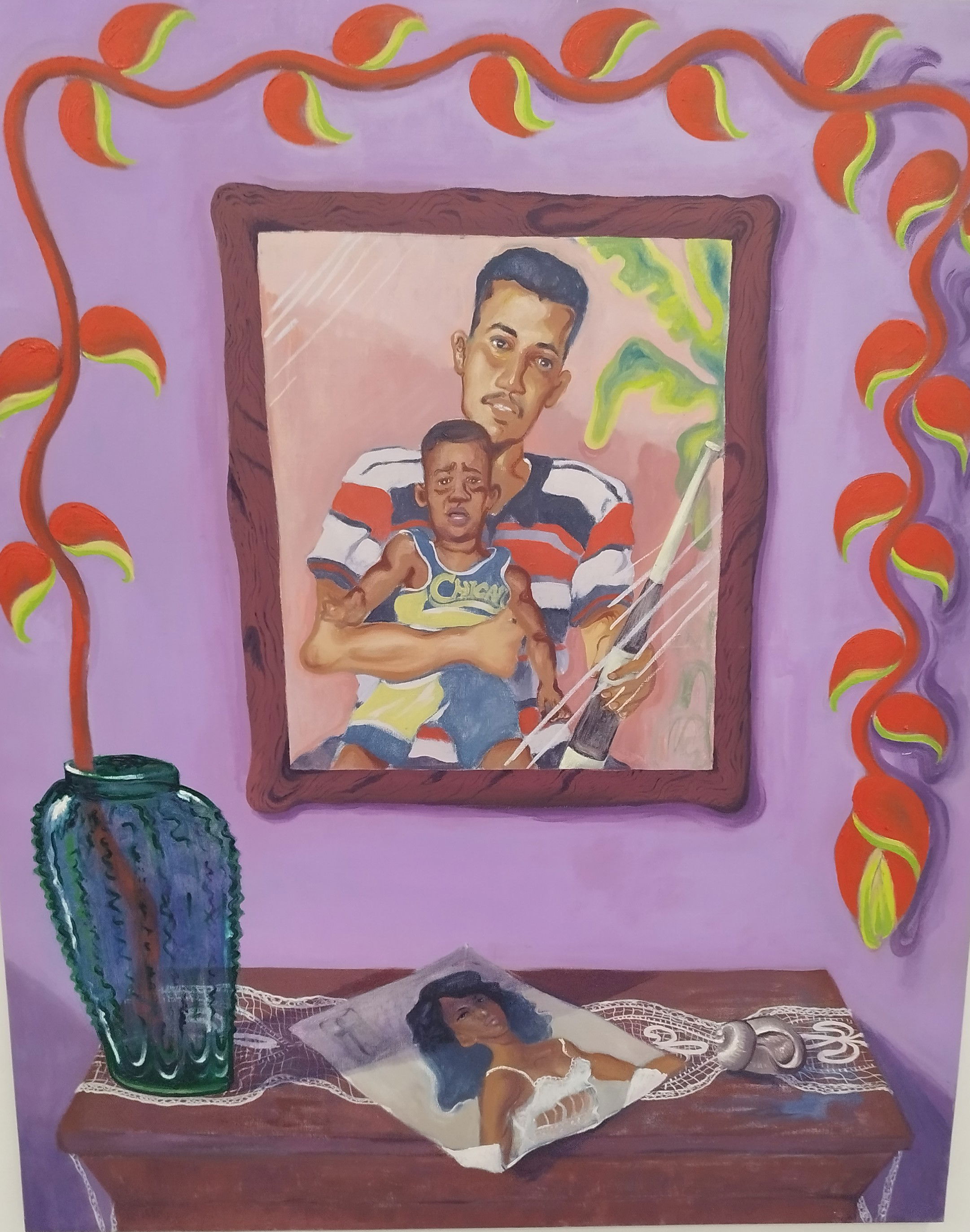 El mejor exponente es el cuadro en el que el niño pugna por abandonar la fotografía con su padre para reunirse con su madre, otra fotografía. O la lágrima del migrante mientras conversa con alguien a través del móvil.