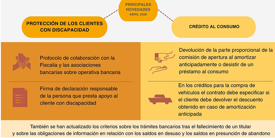 El Banco de España ha actualizado el Compendio de Buenas Prácticas, incorporando entre los nuevos criterios algunos aspectos sobre la atención a las personas con discapacidad en su relación con los bancos. En esta segunda actualización del Compendio, además de poner esta publicación al día en cuanto a la regulación más novedosa con impacto en la clientela, se revisan también los criterios relativos a los préstamos al consumo y a los trámites tras el fallecimiento de un cliente bancario.