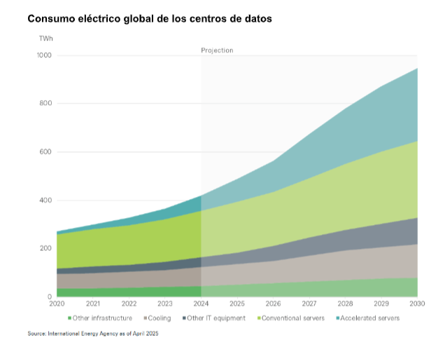 La infraestructura que sustenta la IA y los criptoactivos, como los centros de datos, las soluciones de almacenamiento y los chips especializados, se está consolidando como uno de los mayores consumidores de energía a nivel mundial. Los centros de datos y las granjas de minería de criptos operan de forma ininterrumpida, para ejecutar cálculos complejos y procesar transacciones. Las exigencias en materia de refrigeración, seguridad y estabilidad de la red eléctrica han aumentado de manera constante. Esto genera una tensión creciente sobre las redes eléctricas, que deben mantener la estabilidad ante cargas constantes y adaptarse con flexibilidad a los picos de demanda.