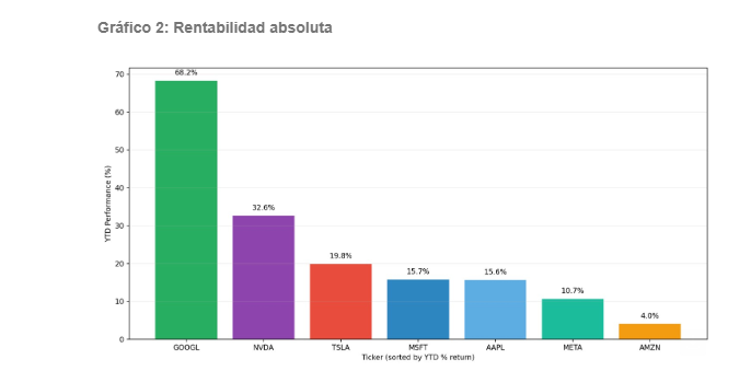 De hecho, el factor IA ya está provocando que grandes compañías tecnológicas en Estados Unidos se vayan sucediendo como los motores del comportamiento positivo del S&P 500 durante siete meses consecutivos. Es el caso de Alphabet, que sucede a Microsoft en este rol, y así sucesivamente.