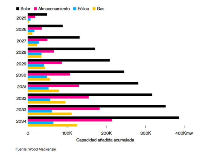 El gráfico aportado por el analista Pablo Gil en The Trader muestra la previsión de capacidad añadida acumulada necesaria durante la próxima década.