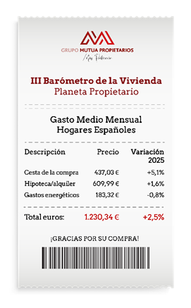 El coste de mantener un hogar en España continúa escalando, y en 2025 dejó una factura en concepto de pago de la vivienda, cesta de la compra y consumo energético de 1.230,34€, un 2,5% superior al año anterior, según el III Barómetro ‘Planeta Propietario’ de Grupo Mutua Propietarios. La presión económica de la factura del hogar se ha situado en 2025 el nivel más alto de los últimos tres años.