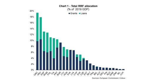 “Más allá de las cantidades sin precedentes del plan de recuperación europeo, lo que marca la diferencia es su ejecución. La infrautilización o la mala asignación de los fondos —a través de proyectos de inversión y reforma — comprometería su potencial para estimular el crecimiento a corto y largo plazo en un entorno fiscal ya de por sí restringido”, afirma Laurine Pividal, economista de Coface para el sur de Europa.