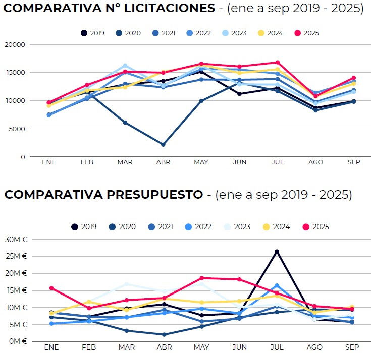 Como revela el estudio “Análisis y evolución del sector de la Licitación Pública”, realizado por la firma tecnológica de soluciones analíticas DoubleTrade, a lo largo de los tres primeros trimestres de este año las administraciones españolas ejecutaron 126.800 concursos públicos, un 6,5% más que en el mismo periodo de 2024 (119.000 licitaciones).