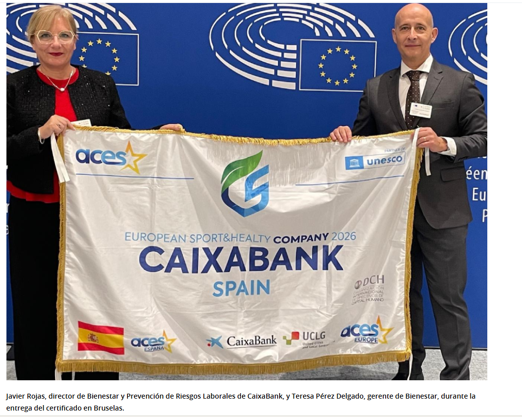 CaixaBank se ha convertido en el primer banco en obtener la Sports & Healthy Company Certification, gracias a su programa de bienestar corporativo Somos Saludables. Se trata de un reconocimiento internacional que acredita a las organizaciones que impulsan de forma decidida la salud y el deporte entre sus equipos. Nace del acuerdo entre DCH Organización Internacional de Directivos de Capital Humano (asociación de directivos de RRHH de Europa y América Latina) y ACES Europe (organización con sede en Bruselas que otorga los reconocimientos de Capitales y Ciudades Europeas del Deporte).