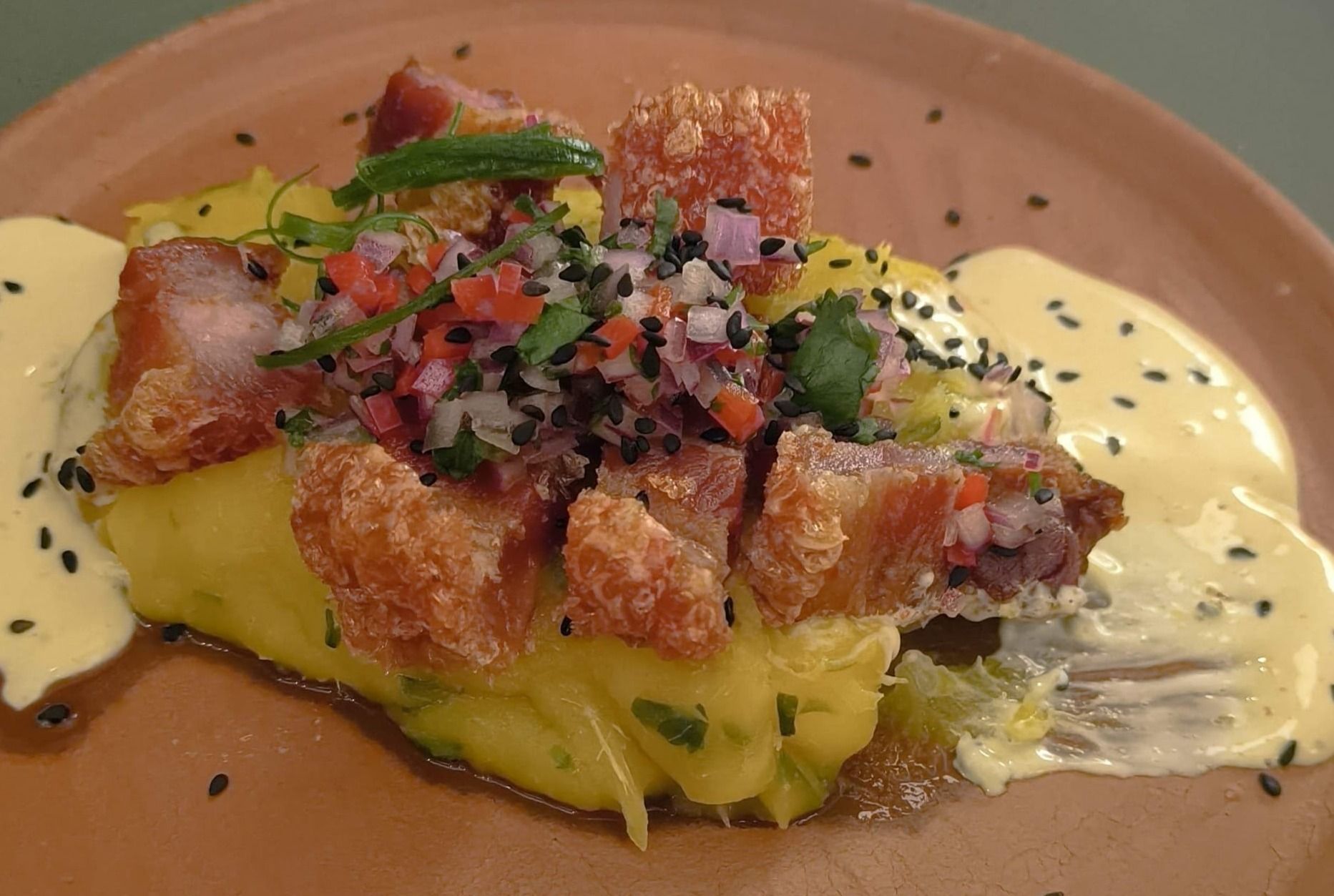 Casa Nokiate (calle San Bartolomé 14, Madrid; de domingo a miércoles, 17:30–00:00; jueves a sábado, hasta las 02:00) es un lugar difícil de definir. Tanto que hay que recurrir a lo que los emprendedores procedentes de Guatemala dicen: una “neo taberna de raíces con alma contemporánea”, combinando sabores latinoamericanos, españoles y asiáticos. Su carta se centra en el concepto de fusión nikkei, con influencias tanto peruanas como japonesas, además de guiños mediterráneos y modernos.